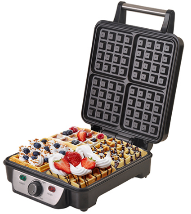 Елегантна вафельниця потужністю 1500 Вт, обладнана термостатом. Ідеально підходить для приготування хрустких вафель. Він готує одночасно 4 вафлі. Він обладнаний пластинами з антипригарним покриттям, що спрощує очищення. Його також дуже легко транспортувати завдяки можливості стояти вертикально.Характеристики: Номінальна потужність: 1100 Вт Максимальна потужність: 1500 ВтПлавний контроль температури Пластини з антипригарним покриттям для легкого очищення термостата — контрольований процес випікання Стояти вертикально, компактно зберігати й заощаджувати місцеІндикатор готовності Індикатор живлення