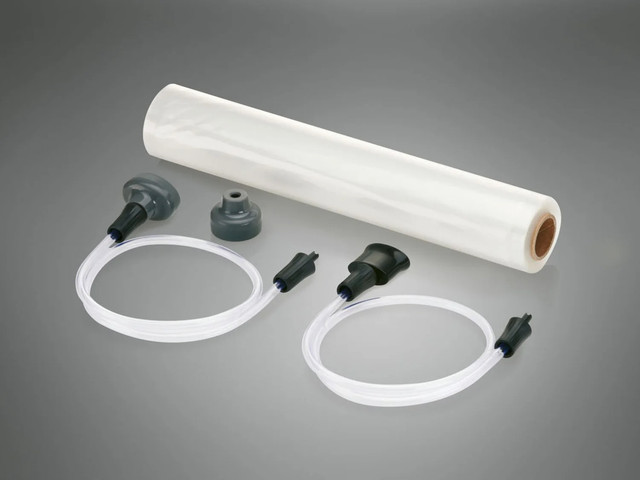 - запасне ущільнення, рулон плівки 3 м і 3 перехідники для вакуумного клапана.
